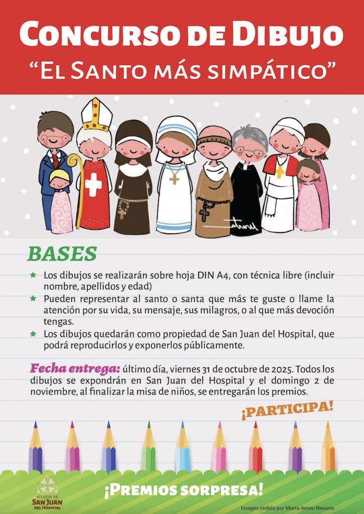 Fecha entrega: último día, viernes 31 de octubre de 2025. Todos los dibujos se expondrán en San Juan del Hospital y el domingo 2 de noviembre, al finalizar la misa de niños, se entregarán los premios.