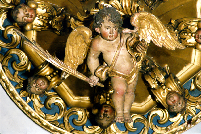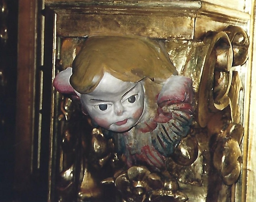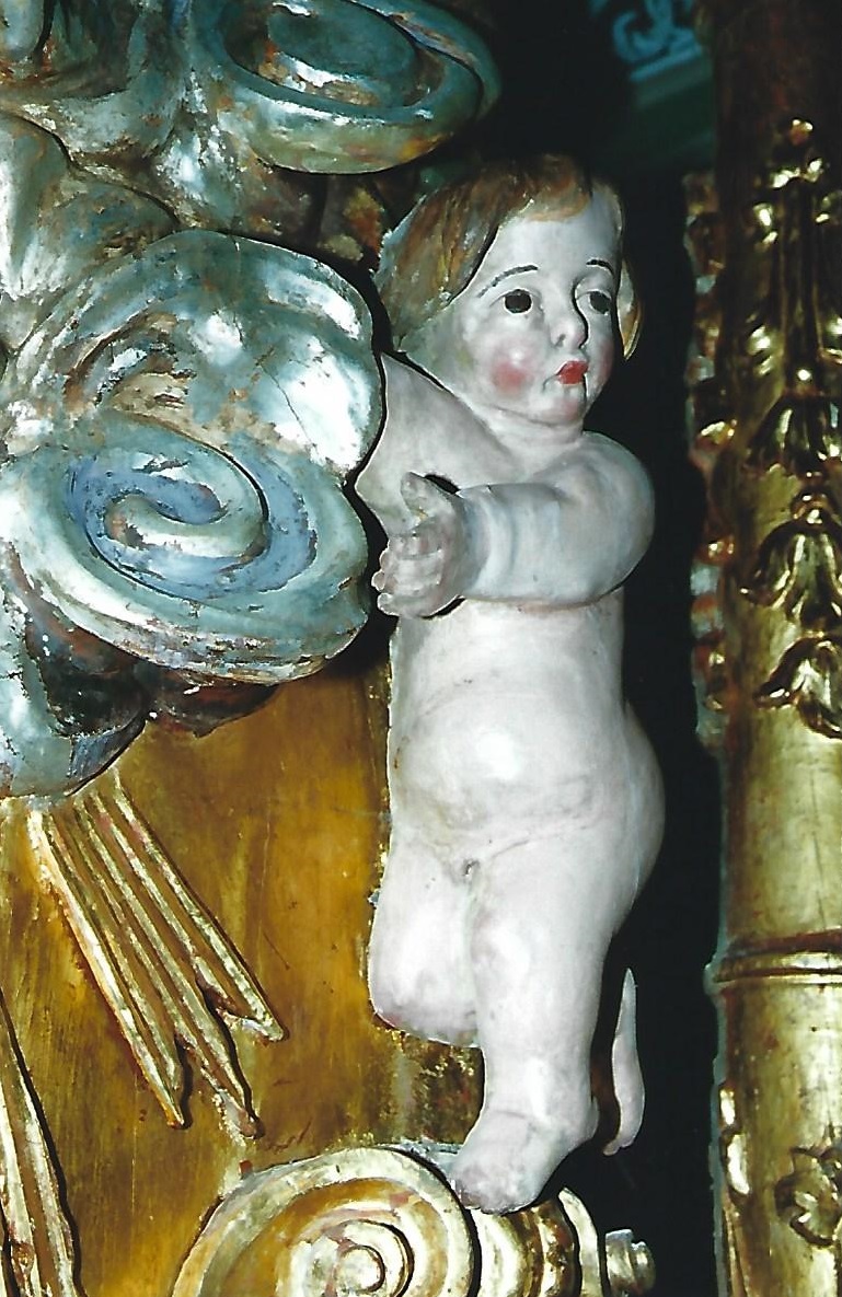 Otros, apenas asoman sus cabecitas en bajorelieve en el retablo donde se hallan; algunos más se esconden entre las escayolas barrocas fingiendo ser figuras legendarias, pero no, son ángeles, inquietos querubines y serafines.