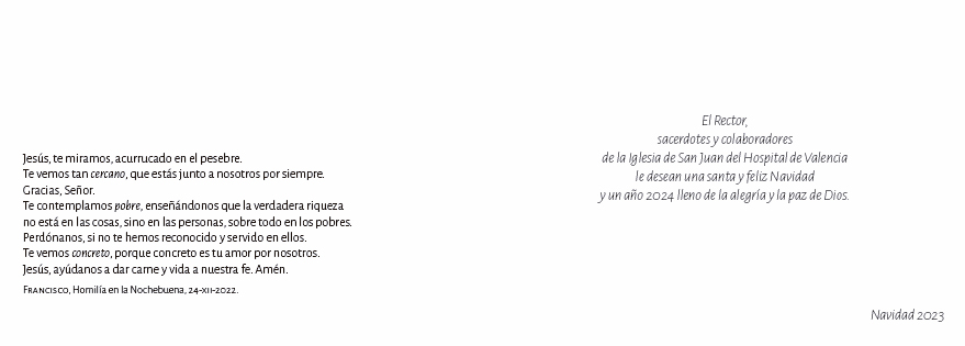 El domingo 24 día de Nochebuena, tendremos la Misa del Gallo a las 24h y después celebraremos la Navidad con villancicos y turrones.