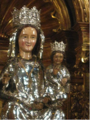 La imagen es una talla en piedra, de poca altura para facilitar su traslado. Su estilo es el propio que en aquellos momentos iba atravesando los Pirineos, procedente de las nuevas corrientes europeas: menor rigidez, mayor movilidad de la figura del Niño Jesús, el pomo en la mano y la incipiente y difícil sonrisa de María.